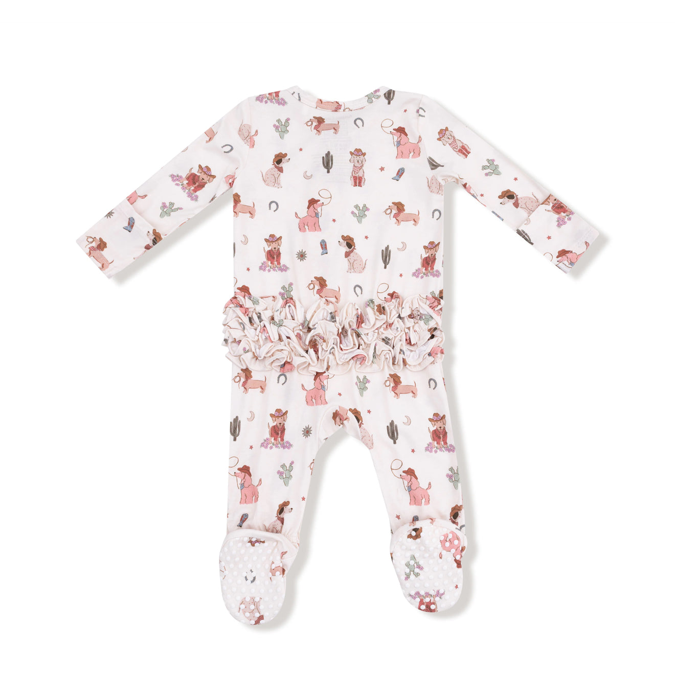 Angel Dear | Cowgirl Dogs Ruffle Back 2 Way ZIpper Footie