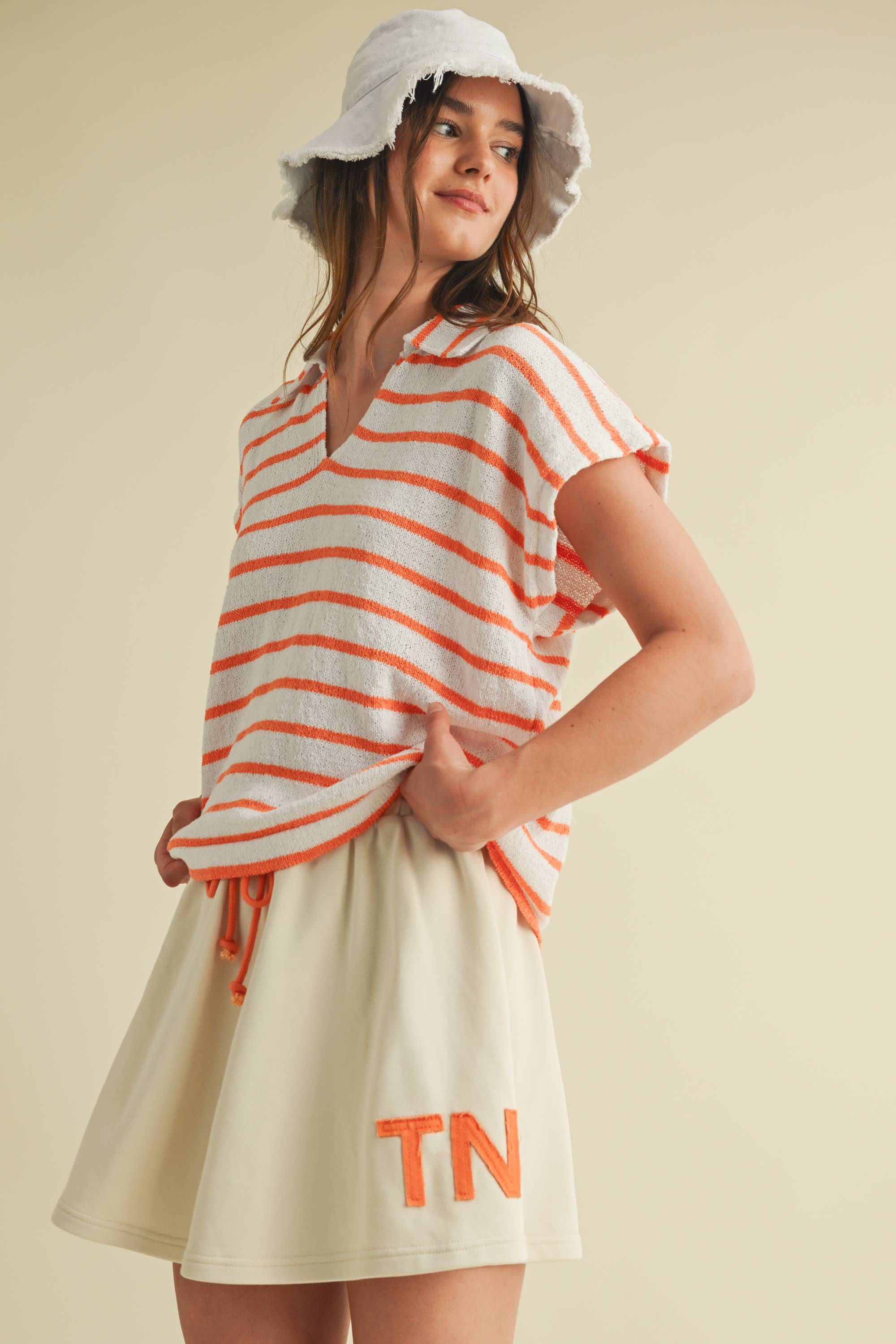 STRIPED COLLARED V NECK TOP GREAT GAME DAY STYLE