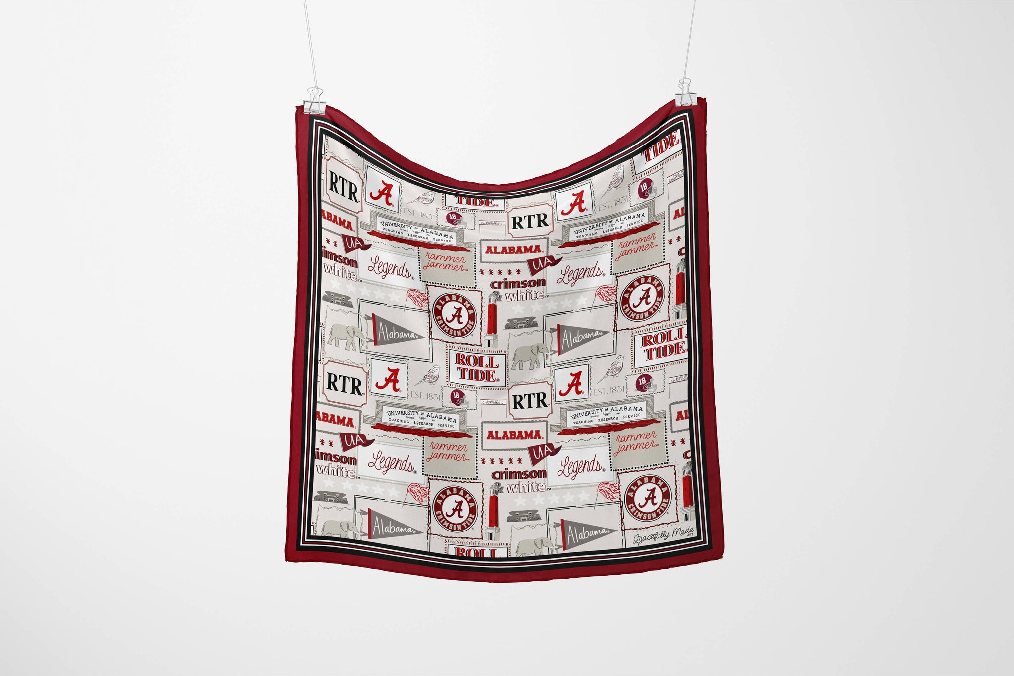 Elevate your game day style with our officially licensed Alabama Silk Scarf. Hand-illustrated with iconic Crimson Tide details—from elephants to “Roll Tide” banners—this timeless accessory is perfect for adding a touch of Alabama spirit to any outfit. Luxuriously soft and versatile, it can be worn around your neck, tied in your hair, or styled on a bag for a classic, spirited look. A must-have piece for every Bama fan!