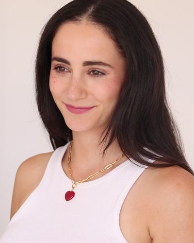 Inspired by film and fashion legend Audrey Hepburn, the Audrey Heart Necklace brings just the touch of whimsy you need in your jewelry box. Featuring a genuine stone heart in your choice of 8 colors on our ever-popular paperclip chain, this necklace is lightweight and dainty while still adding a playful pop of color. It's the perfect piece to wear for your next date night or girl's night out!